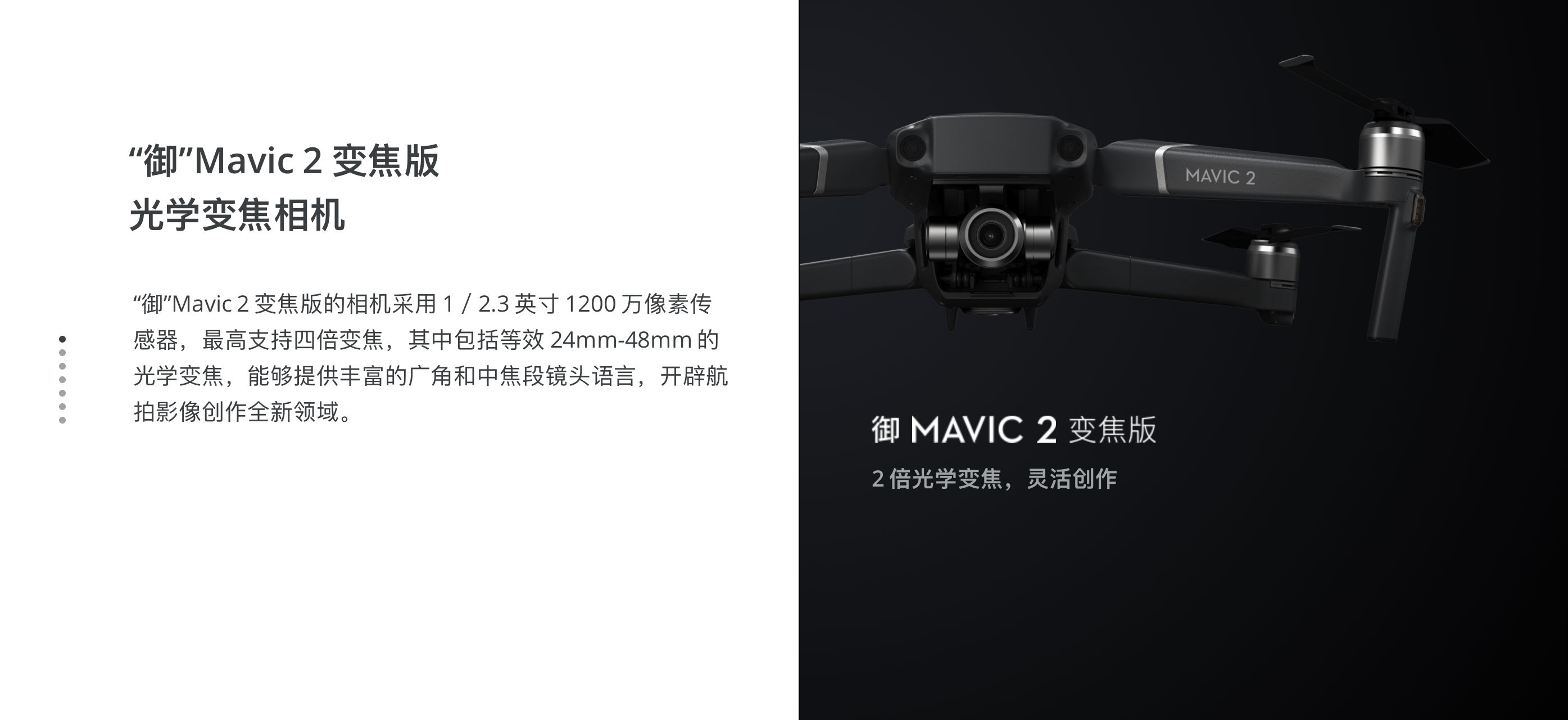 “御”Mavic 2 是新一代消费级航拍旗舰,更是汇聚大疆创新全方位技术演进, 以及对航拍影像深刻理解的倾力之作。 “御”Mavic 2,只为成就理想创作